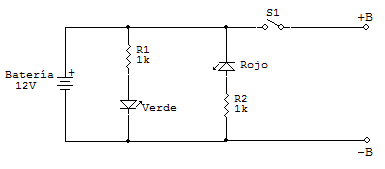 Su función es alertar sobre la conexión de los terminales (caimanes, pinzas) a la batería. Cuando la conexión es correcta se encenderá un led verde indicando que es seguro subir el interruptor que dará paso a la corriente hacia el circuito del inversor, en caso contrario, se encenderá un led rojo. Para que la protección sea efectiva, es fundamental que el circuito monitor se conecte antes del circuito inversor, es decir el accionamiento del interruptor de potencia estará condicionado al funcionamiento del monitor. Un esquema puede ser: