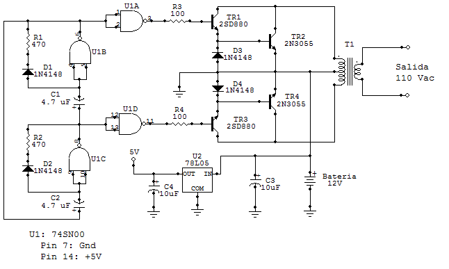 - Inversor 12 Vdc @ 120 Vac - CM2 - Inversor 12 Vdc @ 120 Vac - Basado en compuerta lógica SN7400