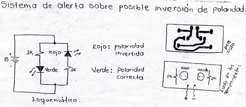 A la hora de conectar los terminales a la batería bien sea para este inversor o para cualquier otra aplicación que requiera conexión de terminales (caimán, pinza) es posible que por error o descuido se conecten de forma invertida (Positivo por negativo y viceversa). Para evitar un daño en el circuito ocasionado por este error, se incluye un circuito sencillo pero fundamental, como se muestra a continuación.
